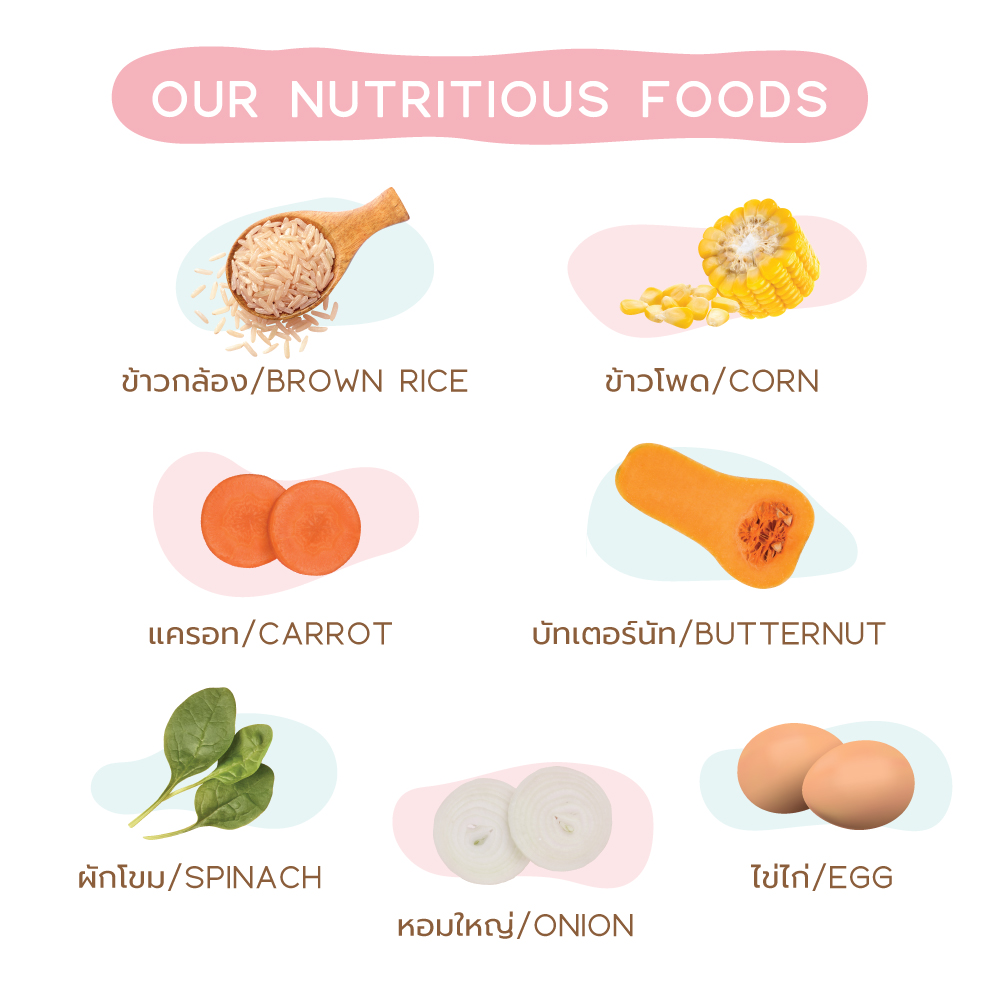 Brown Rice, Chicken, Corn, Carrot, Butternut, Spinach, Onion, Egg