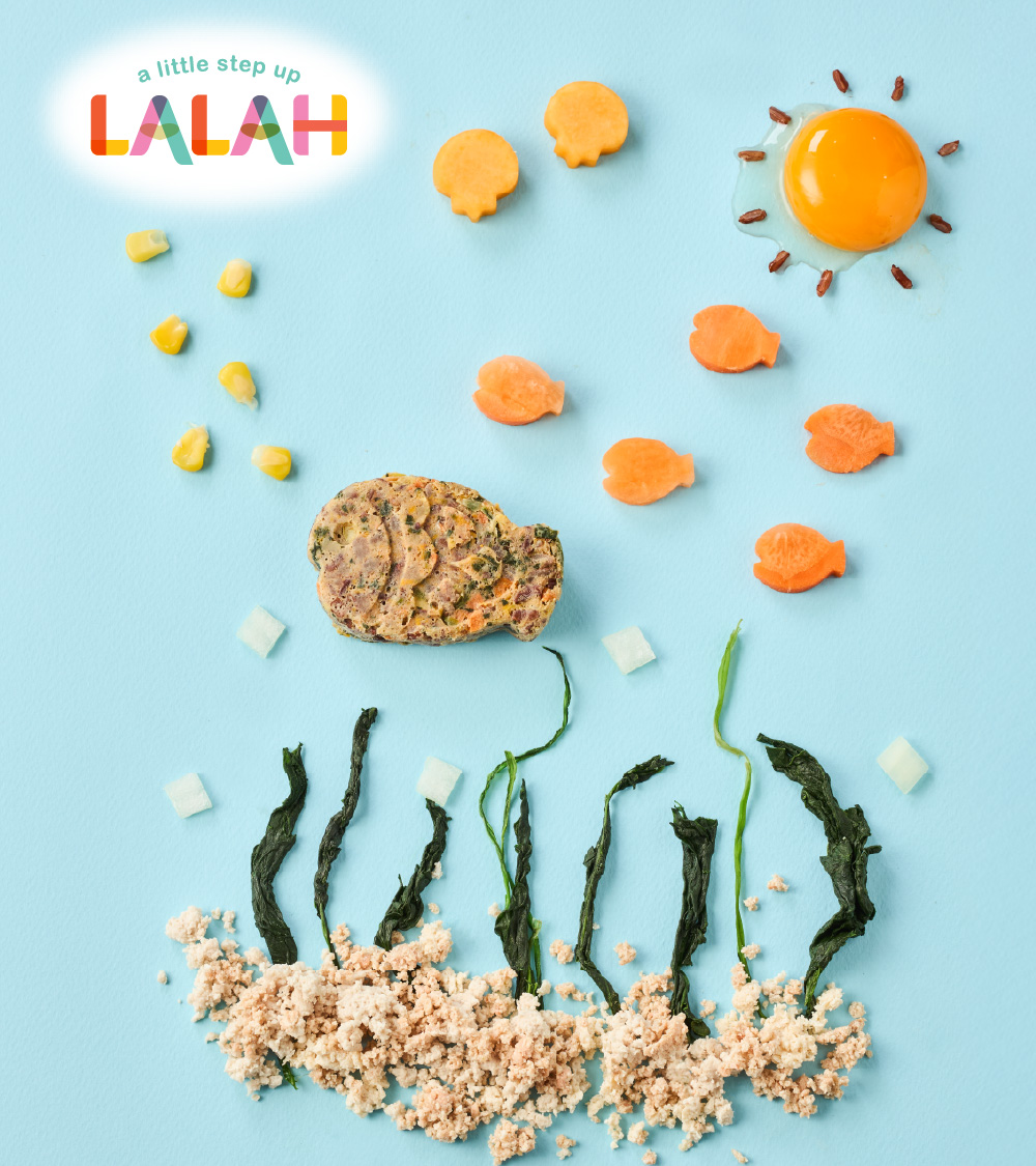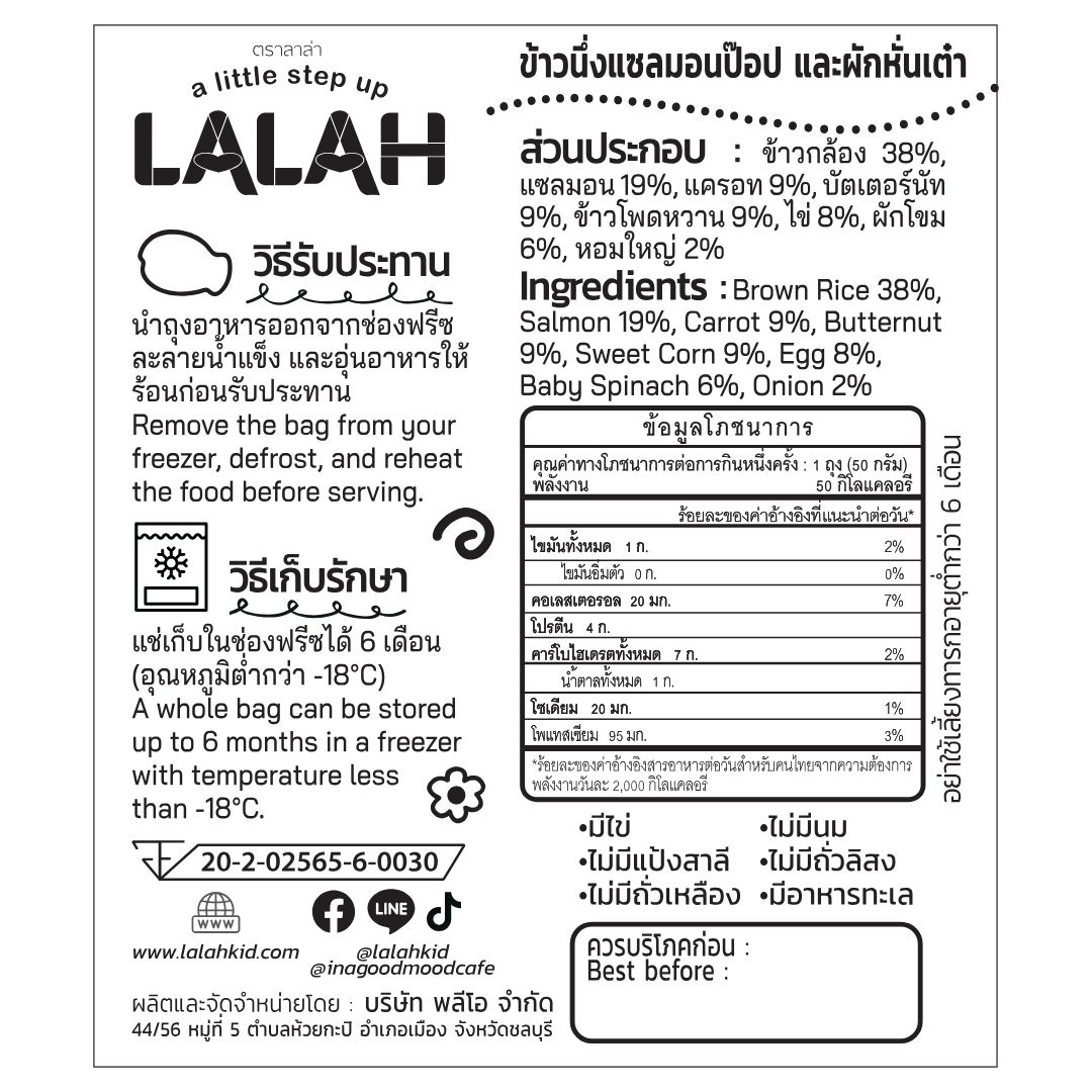 Brown rice, Salmon, Corn, Carrot, Butternut, Spinach, Onion, Egg